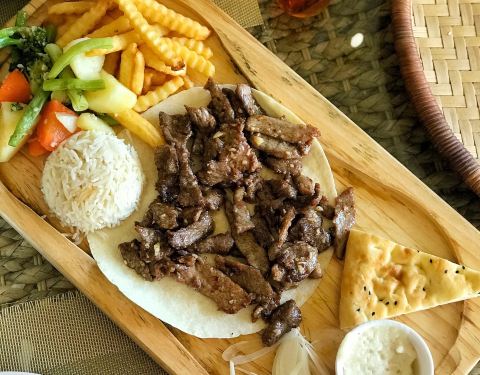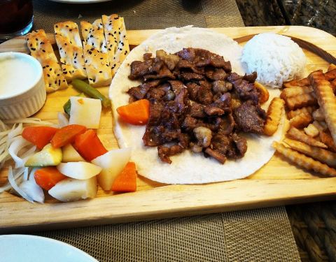 网上看到的团购,非常划算,赶紧下手秒杀啊。坐标松柏这边,可以坐到松柏公交站,走到通宝大厦就可以看到了,门居然是常闭的,但是里面是有在营业哦。服务员是个帅气的阿拉伯小伙子,很热情迎接我们,店里放着的是异域风情的歌,虽然我听不懂哈哈。好久没有练习英语口语了,我听得懂他说啥,但是从未嘴里就是憋不出几个词。上的内容也是很大份,我们2个女生硬生生没吃完啊,土耳其大饼非常大,上手吃比较快,用刀叉不太方便。沙拉很特别,貌似是用苹果醋,很是开胃,上面还是有一些饼类的。牛肉卷分量真的十足,最喜欢这道菜了,牛肉很多,旁边的配菜也很好吃哦。搭配的酱汁好像是奶制品,很特别,米饭也是有点咸味。想要体验异域风情可以过来尝试,工作日的团购比较划算哦。