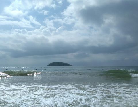 环境不错。不过我去晚了。而且人少,有打鱼的鱼船在海滩上卸货,能看见很多。石梅湾风景挺好