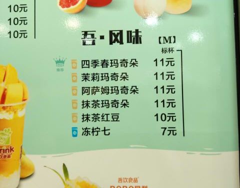 在学校门口,路过,味道不错,就是价格好像比其他地方高一点,其他地方暴打柠檬10元,这里12元,顾客很多。