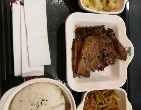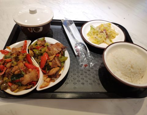 - 面积比较大,一到饭点生意就很好。小炒肉套饭味道不错,小煎鸡一般。估计厨师的个人水平还是占一部分因素