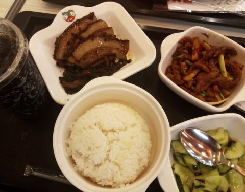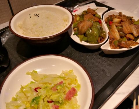 在凯德广场附近想找个吃饭的地儿,想来想去就选了这家位于广场负一楼的乡村基。面积比较大,一到饭点生意就很好。小炒肉套饭味道不错,小煎鸡一般。虽然是连锁店,其实每个餐厅的味道还是有所不同。估计厨师的个人水平还是占一部分因素。这家旁边是永辉超市,吃完饭还可以顺便逛逛超市。