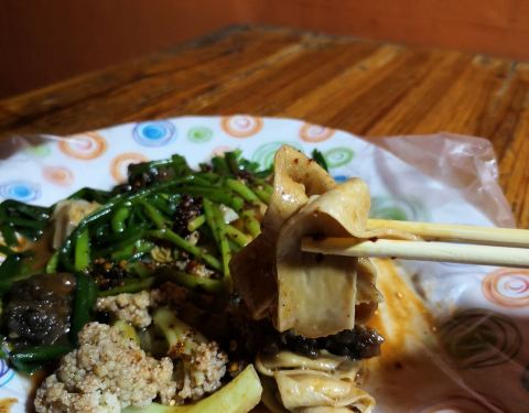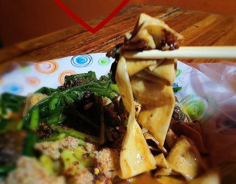 : 花菜\韭菜\炸紫菜\豆皮等:花菜口感脆地,韭菜鲜嫩,紫菜口感也不错软糯可口,紫菜鲜美,豆皮...