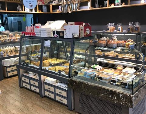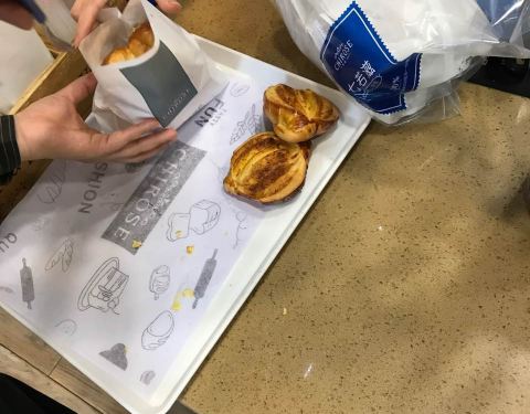 我们路过这家蛋糕店时发现的,老板非常的热情,给介绍各种甜点和面包。说店里正在搞促销活动,可以进行品尝,面包和甜点都是当天新做的,非常好吃,我们买了很多。