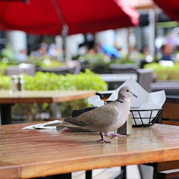 眼肉&牛肋 RIBEYE STEAK COMBO餐前包不限量供应,服务员先根据人数以差不多2个/人的量端上来,虽然是免费的,但超级良心啊,面包冒着热气就端上来了,口感松软,外表经过烤制后很酥脆,有浓浓的黄油香。因为在迪拜吃菜的机会很少,所以套餐里都要了凯撒沙拉,爽口,搭配牛排再好不过了。如果点了苏打饮料,店家说是可以免费续杯的,不限次数。但可选的饮料种类不太多,只有可乐芬达雪碧和柠檬茶。饮料杯真是大,来了迪拜首先感慨的就是量,国人胃真心受不了,一个顶俩。饮料后面的桶装的是花生,应该是当作SNACK来吃的,也是不限量,在等待牛排时打发无聊时间还是很不错的~~牛排会随第二道配菜一起装盘呈上,厚切西冷量大到和孩子的手掌差不多大,远处的眼肉是孩子手的两倍,点的10 OZ.分量。肉的品质很好,因为有孩子在,不能点太生,虽然眼肉点的全熟,但肥的地方很鲜嫩多汁,瘦的地方也不柴西冷因为是厚切,选了全熟之后就显得很柴,肉质稍死,但周先生吃的津津有味。因为店里提供免费的花生,所以店外的鸟类尤其多~~桌子要是没即使打扫干净,就会被这些小动物们侵占哦~~