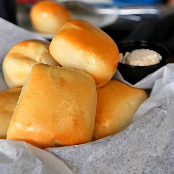 - ...是免费的,但超级良心啊,面包冒着热气就端上来了,口感松软,外表经过烤制后很酥脆,有浓浓的黄油香