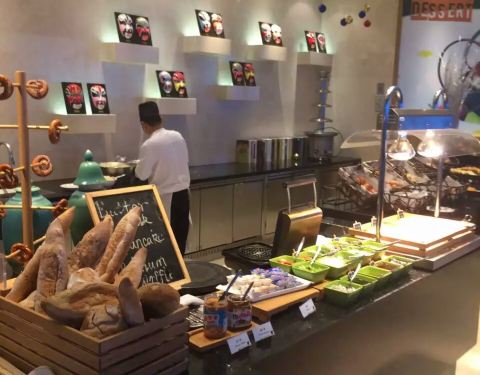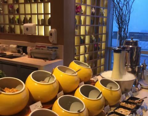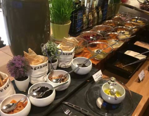 酒店的环境超级好,五星级的酒店,在郑州首屈一指的设备设施,就餐环境非常的好,品种、花式繁多,琳琅满目,都有点不好选择吃什么了,热餐、冷盘都有,餐厅装修格调高雅,服务人员贴心、细致、热情,很有礼貌。...