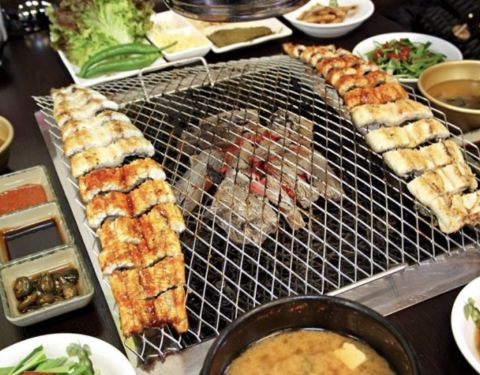 很接地气的一家烤鳗鱼店,这家是直接烤活鳗鱼的。真的很新鲜,把蒜放在火炉上一起烤也特别好吃的。直接生烤很Q弹,服务员会教你吃法的,按照那个方法吃,特别香特别好吃。