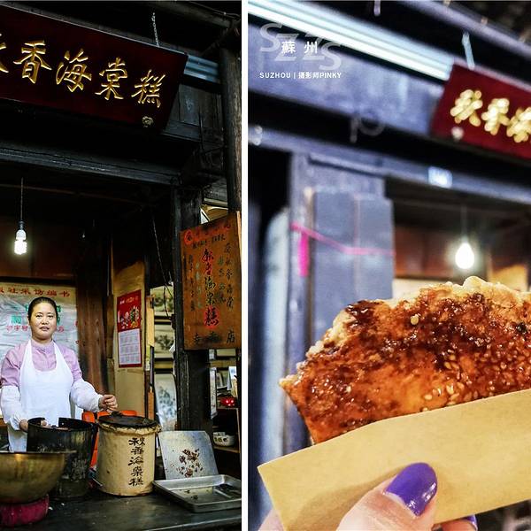 甪直古镇是离苏州比较近的一座古镇,这里的景致很有江南韵味,在古镇漫步颇为惬意。主街的廊檐下有很多小店铺经营着当地特色小吃,秋香海棠糕就是其中比较吸引人的一款。就在小河边的廊檐下,就在由民居改成的店...