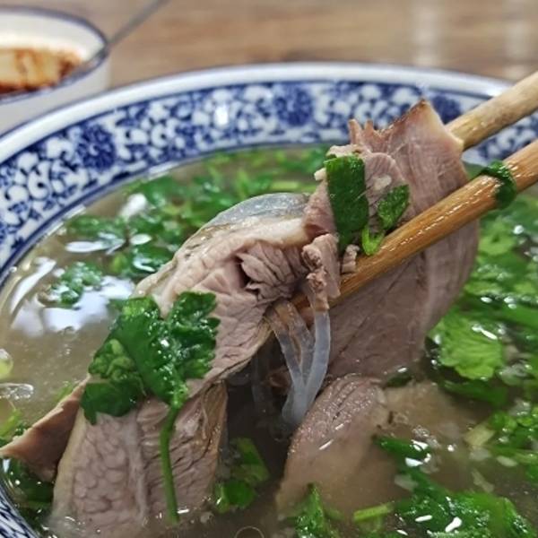 在店里很亮堂水盆还是原来的味道点一份水盆送—小碟糖蒜和一个饼粉丝和牛肉量刚好够吃汤味特别鲜辣椒挺辣酌情添加喜欢吃肉的人可以直接点优质的肉会多很多