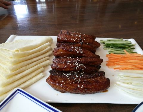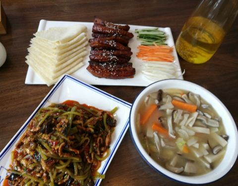 到德阳玩,网上说这家味道好就打算去尝尝。先去的上美广场附近的那家,门口无法停车就换了这家店。这家店门口相对上美店停车位要多一点,生意非常好。进去的时候服务员忙不过来,是一个类似领班的戴眼镜的男士接待的。浇汁五花肉非常有特色,感觉是炸过再烤的,肥肉不腻,裹着面皮和萝卜丝还有葱丝特别香,很推荐。野菌山药烧肚条也很鲜美,肚条软硬适中。鱼香肉丝和小炒肉不推荐,不觉得好吃。总体感觉菜品有好有坏,服务态度有点冷淡。