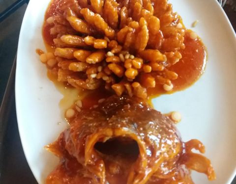 对于大虾是比较钟爱的,所以论是煎、炒、炖、煮、炸,怎么做都可以。大董的奇妙虾球,还是挺有自己特色的,虾的颗粒挺大的,炸过的虾外面裹得沙拉酱,味道很奇妙。