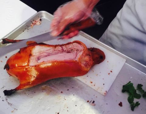 现在的烤鸭店遍地开花,大董就是名气很响亮的一个牌子 。招牌的酥不腻烤鸭,确实是外皮酥脆,鸭肉肥而不腻,瘦而不柴,名不虚传。鸭皮蘸白糖,鸭架做汤,全身都是宝啊。
