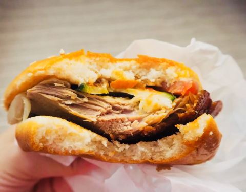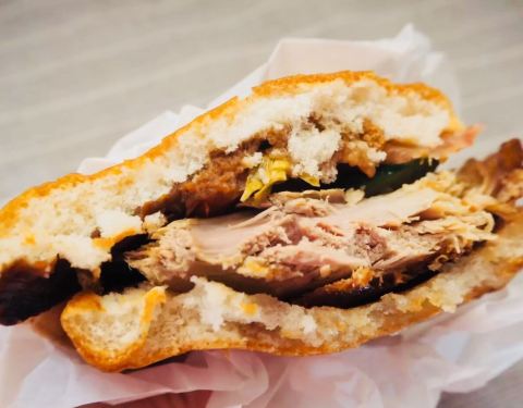 大董鸭 记得刚开业的时候,去实体店排队买过。好久不吃,特意叫了外卖。看看味道变了没~整体感觉还不错,就是太干了,调味有点奇怪。 传统酥不腻烤鸭堡 原来吃过一次,感觉味道不太一样了,味道还是香的,但是个人觉得太干了。鸭肉挺多,肉质紧实,鸭皮酥脆油香十足,蔬菜解腻,酱汁味道有点奇怪…… 蛋挞 比较正统的做法。中间厚实奶香十足,前后薄而有弹性,焦糖香浓。甜度刚刚好,柔软入口即化。 小鲜肉月饼 没想到最爱吃的居然是肉月饼。热腾腾拿出来,真的是太香了!!糕点的甜香,猪肉的肉香,清淡与浓郁完美融合。酥皮香脆可口,薄而不腻,肉球饱满多汁,肉质鲜嫩,满口肉汁!!超级香!