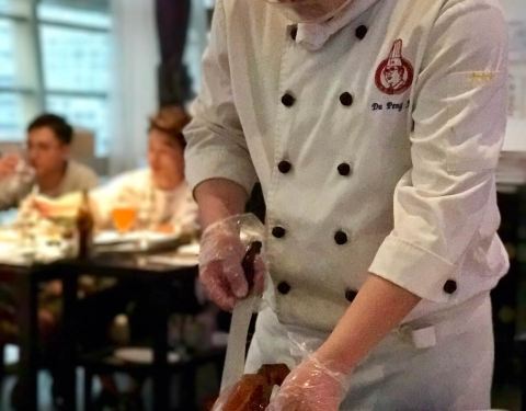 1、大董烤鸭是北京的三大品牌烤鸭(全聚德、便宜坊、大董)之一,在朋友的建议下,今年去北京时特地去了吃了一次大董烤鸭。此次前往的是大董(华贸店),位于北京市朝阳区大望路华贸购物中心西区4楼401。 2、入店之后看了菜单才明白,大董除了烤鸭,还有老北京的小吃,其它菜品似乎并非都是京菜。 3、点了一只大董“酥不腻”烤鸭(298元/只)、芥末鸭掌(68元/例)、鹅肝汁小牛肉(98元/例*3人)、松鼠鳜鱼(288元/斤,2.3斤,662.4元)、炸烹虾段(128元/例)、清炒豌豆尖(68元/例)、艾窝窝(15元/例)、驴打滚(15元/例)、糖耳朵(15元/例)、糖卷果(15元/例)等,外带酒水不算共计餐费1646元,四人食用,人均约411.5元,真的不便宜。 4、大董的烤鸭是北京三只烤鸭中最贵的,其余两只的售价都一样的(198元/只),吃到最后,也没有吃出大董与其它两个的差异,也就是描述不出大董烤鸭究竟好吃在哪?我们一行四人都没有吃过大董的烤鸭,除我之外他们三位都是老北京人,最后,我们一行四人一致认为还是全聚德的烤鸭最好吃。 5、大董(华贸店)的那个鹅肝汁小牛肉(98元/例)真心不敢恭维,肉太老了,咀嚼不动,是囫囵吞枣地把那块牛肉吃下去的,不吃不舍得,因为太贵了,牛肉难吃,点缀在牛肉旁的三个半颗的西班牙甜葱也不便宜,所以,也吃了。 6、大董菜品真心不便宜,大董菜的味道与这个价格不匹配,人均四百多的消费在上海就餐的话,无论菜品、味道、服务,都比大董要明显地高出一大截,这个消费价格,在上海吃西餐、或吃日料的话,都会获得不错就餐体验。 7、以后再去北京吃烤鸭的话,还是去全聚德、或者便宜坊,这两家除了烤鸭,其它菜品的烹饪质量也是不错的。