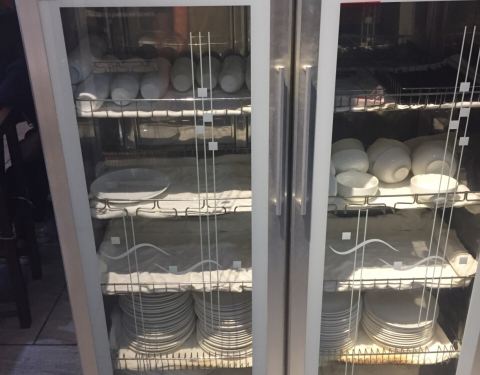 ...交通灯旁,店内很多人用餐,自助式,碗筷都在消毒柜里,自取食物时真的要注意安全,因为有油茶等热食