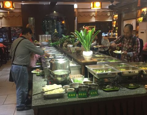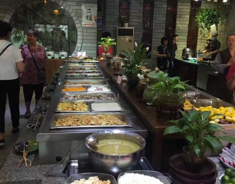 没到初一十五的时候人非常的多,餐厅的环境也非常的不错。好吃还不贵。菜品不是很多但是加上点心各种小吃以及水果就很多了,总之还是很经济实惠的。