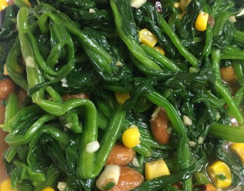 锅塌豆腐,豆腐煎过,所以外脆里嫩很入味,还有海参小块儿,虽然是素菜也做的很赞呢