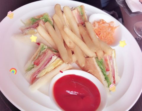 甜點是網購的酒店房間套餐送的,三文治盛惠90,意大利面108,價位合理,因為星級問題,還是味道就一般般,服務員態度很好!週五去的,全場就我們一家,下午三點多