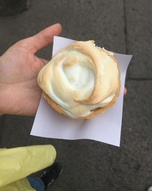 五一来绍兴玩,被绍兴本地人推荐必吃的甜品小食奶油小攀,而且必须认准这家高老太。说实话门面实在小的太不起眼,各种没他家出名的排场都比这家大。五元一个,东西看起来也是相当朴实。尝了一个,最上层是奶油,略甜。下层是蛋清做的软软的,淡口。外皮略硬,总的来说没有想象中好吃呢!