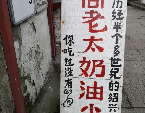 脸脸推荐的这家,我们一开始都以为是因为味道好,原来后来才发现,他说这是绍兴的一道美食,是绍兴的独有美食,所以推荐我们吃,推荐这家的原因,是因为他吃过的是这家吧。我想他并没有推荐哪一家,他只是推荐这道独有的美食而已。 环境:|★★| 一个小小的店面,很大的旗帜挂着奶油小攀,所以真的很明显就可以看到他们家,他们家又离那个臭豆腐蛮近的。所以我觉得生意也会被带上吧。 服务:|★★| 老板娘好像还蛮客气的,我印象不深刻了。过。 口味:|★★| 我记得他就是个里面全是糖水的东西,咬下去的时候,你就会发现透明的糖水在涌出,到你的手中,然后你全手就是粘粘的,但味道可以说几乎没有味道,除了甜之外,就没有别的味道了,还有一点焦焦的味道吧,在我的印象里,就只有这些,其他的味道什么都没有,所以不觉得好吃。我记得我们吐槽的时候,脸脸就说他从来没说好吃,只是说这是当地的美食,可以试试看而已。再他这样说的情况下,我突然觉得还蛮有意义的,毕竟这是其他地方吃不到的东西。 ************************************************************* 总结:|★★☆| 可以过来尝试一下当地的美食,当然不一定来这家,其他家也可以。