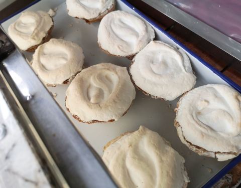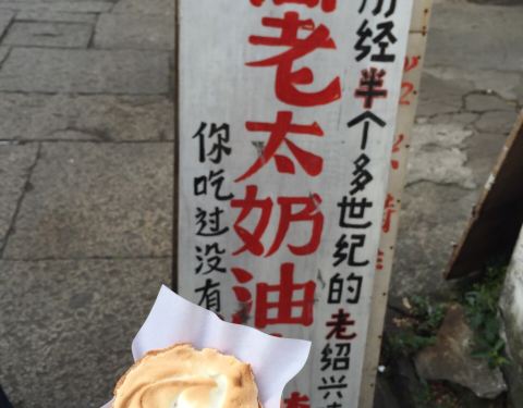 绍兴网红小吃——高老太奶油小攀。相传奶油小攀是一种舶来品,虽说名字里有奶油,可和奶油一点关系也没有,是由鸡蛋清和糖做出了类似于蛋挞的口感。刚出锅时味道还不错,形状比味道更像蛋挞,多吃两口有些腻,尝尝即可。