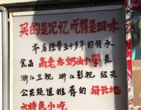 从小就住绍兴,记忆中儿时有好多好吃的,后来长大了离开了很难得再回来!这一次五一回家也是想寻根儿时的好味道,高老太的奶油小攀必须要打个卡!哈哈哈,感觉是一般游客都不会买的店啊,店面和我记忆里一样“寒...
