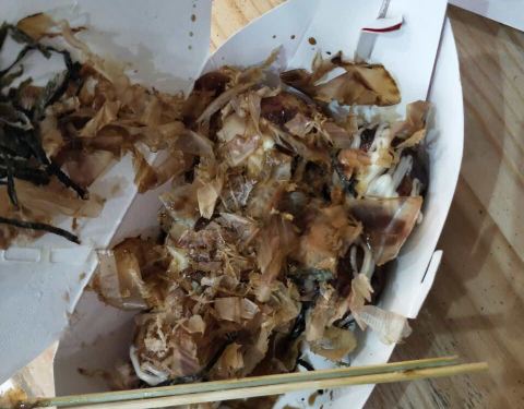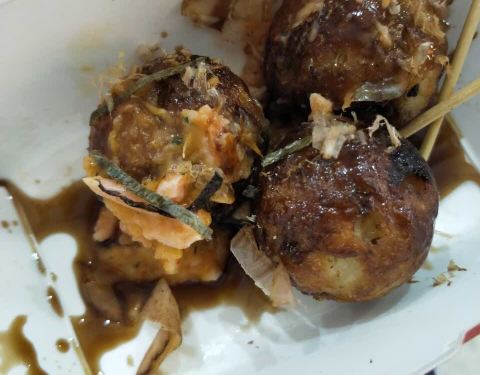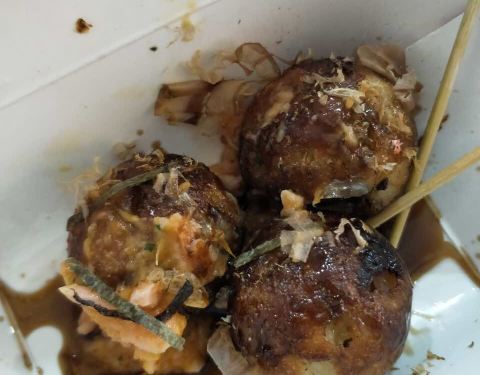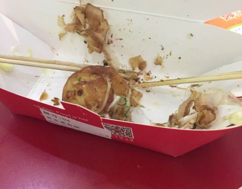 小孩要的原味章鱼烧,只吃了一个就不吃了,不如海亮地下那家好吃!