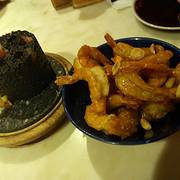 出了读书馆,来这里解决晚餐。装修古香古色,服务也不错,干酪鱼好滑好嫩,可是煤球上来后女儿就不吃它了。我们点了28块的小吊梨汤,稠稠的还有蜂蜜的味道?好大一壶,和女儿吃饱了都没有喝到1\4,...花费:100左右