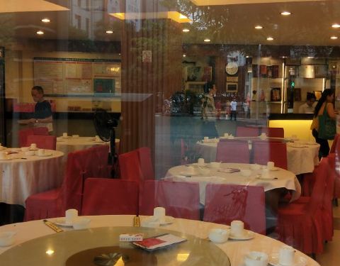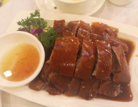 太古仓附近的五大酒楼之一,除唐苑之外,当数它家的大厅是最小最窄了。但胜在房间多,除二楼、三楼成层都是房间。装修风格中式简约。「古法烧鹅皇」是它家的招牌,许多客人专门从好远的地方坐车来吃。皮脆肉香,又不是很肥腻。「怀旧骨法市师鸡」「豉油王鹅肠」「红葱头焗骨」「空心煎堆」「煎薄餐」都是值得推荐的菜式。煎薄餐还获得金奖。