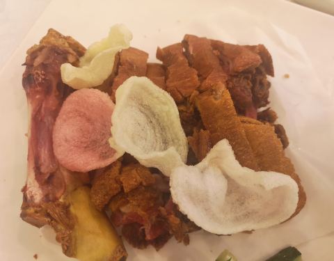 朱仔记算是比较老牌的粤菜餐厅,以前一直吃的是礼岗那边的店,这次换去革新路这家。一般我都爱吃招牌咸猪手,烧鹅皮算比较脆,肉质还算可以,胡椒虾我觉得不错,胡椒味道比较浓郁,酸菜鱼份量比较少味道一般般。