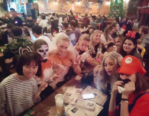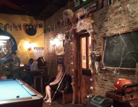 非常好的一家酒吧,万圣节去的,里面一群大学生在里面好活动,都是复旦、同济、交大、上财等名校的,包括有很多的外国留学生,穿着打扮和相貌都很漂亮。里面的环境和吃的东西都非常好,很满意,很开心。