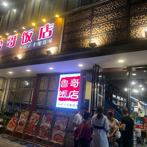 名气很大,据说以前是苍蝇馆子,开了18年了,传说中中山亭三剑客之一,早已名声在外,属于老长沙的家常菜馆,现在开了新店,在黄兴北路北正街上。附近有地铁一号线培元桥站,交通很方便,附近也有停车场,没有因...名气很大,据说以前是苍蝇馆子,开了18年了,传说中中山亭三剑客之一,早已名声在外,属于老长沙的家常菜馆,现在开了新店,在黄兴北路北正街上。附近有地铁一号线培元桥站,交通很方便,附近也有停车场,没有因为火了而提高价钱,良心商家,性价比超高。 【环境】典型的湘氏文化装修,店面有两层,位子宽敞数量多,就餐环境舒服。朋友小聚或是家庭聚餐都极为合适,所以自然而然排队的人特别多,每次路过店外都排了好多人! 【口味】 {孜然牛肉}必点的大招牌!牛肉切得比较碎小,适合用勺子挖着吃,肉质细嫩,口感还不错,超级下饭,油比较重,炒出来香味十足,还比较有韧性,而且伴着孜然粒,配饭的绝佳搭配! {茄子咸蛋黄}推荐的人比较多,与其他家的炒饭不一样,炒得带了些汤汁,茄子切得比较细条,但是沾满了咸蛋黄,口感软糯,还是值得一试!但是油稍微多了点,吃多了稍稍有点腻。 {口味米豆腐}作为豆制品爱好者,这是我一定要尝试的一道菜,米豆腐容易做得碱味过重,但是鲁哥处理得还不错,特色是在豆腐里加入了一些腊八豆搭配,不全是单纯的辣椒味,所以让这道菜本身更加鲜香,必选推荐!{德茂隆酱香干}也强烈推荐,很不错!豆制品忠实爱好者! {老长沙糖饺子}糖饺子作为老长沙的一种小吃 ,很多店都有做,但是形状味道都不一样,这家店的糖饺子是类似圆柱体,炸出来后沾的不是白糖颗粒,而是经过碾碎的粉末状白糖,个人还比较喜欢,口感比较软糯。 {酸萝卜牛百叶}鲁哥真的是主打下饭,酸萝卜很脆,切得细细的,放了牛百叶之后,口感更加独特鲜美,也推荐尝试! 【服务】每天排队吃饭的顾客骆驿不绝,在外排队天气热的话还是有点难受,建议可以提供一些饮品或者冰棍。口味总体来说还是不错的,算比较可口的老长沙味道,但是还是感觉可以再推出几个主打的特色,服务的话还是比较到位的,有什么需求都能满足!值得拔草!