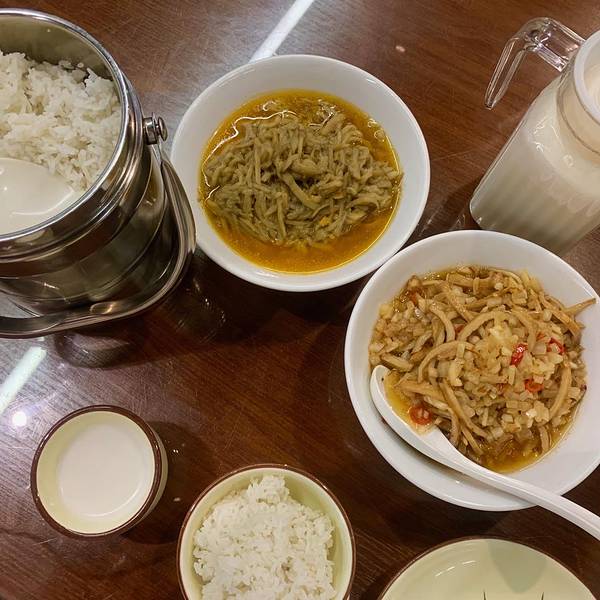 米浆非常好喝,口感很醇厚,十分推荐。人很多,饭点需要排队等桌。茄子和酸萝卜都有点油,吃了有些腻