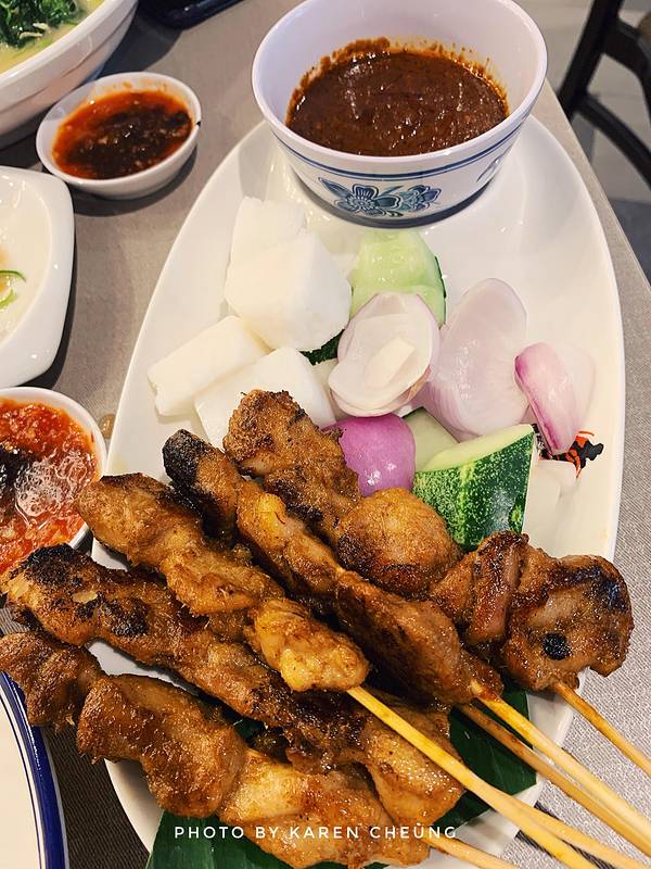 在坡国的最后一餐,终于想起了去吃海南鸡饭。可我已经来不及打卡天天、文东记那些知名网红店了,在机场逛星耀樟宜Jewel发现的这家,是一个新加坡本土品牌,“报喜海南鸡饭”。 点了一份海南鸡饭单人餐,鸡腿肉(点餐可以要求鸡的部位),鸡肉嫩滑,咀嚼起来有弹牙的口感,不干也不油腻,再蘸秘制的辣椒酱。海南鸡饭,最经典的其实是饭。油饭粒粒分明,里面加了斑斓叶和鸡油,吃起来有淡淡的咸香,回味无穷。沙嗲,是一种传统的马来美食。有点烧烤的意思,将腌好的牛肉、羊肉、鸡肉串成串炭烤,蘸一层厚厚的沙嗲酱一起入口。沙嗲酱由花生酱、椰酱、幼虾等调制而成,香醇无比。可适当加上小黄瓜及洋葱等,让沙嗲味道更加分明。我想,海南鸡饭之所以是新加坡的国菜,最典型的标志美食,在于这种不可复制的独特口感。虽然没吃过其他几家,没法来对比。个人感觉这家海南鸡饭还不错,中规中矩不会踩雷。View很赞,景观位正好能看到Jewel的大瀑布。📍地址:星耀樟宜Jewel B2层 ⏰营业时间:6:00-0:00 💰人均:140rmb ✔️必点:海南鸡饭