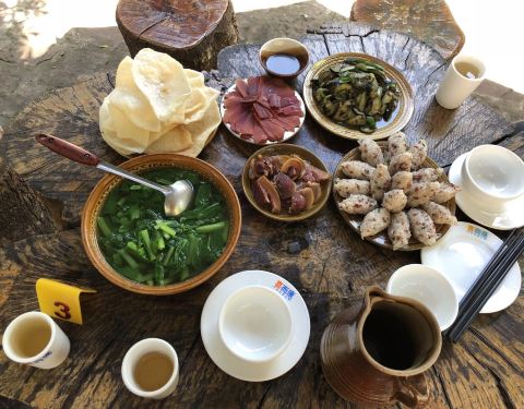 吃饭的地方就在村口,一眼就被舒适的小园吸引过去,原来这里是舌尖上的中国介绍诺邓火腿的地方。点了几样菜都好吃,最好吃是火腿刺身,一定要点,火腿饭团味道也不错。