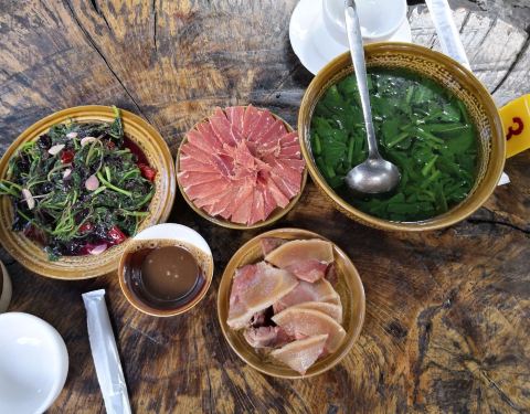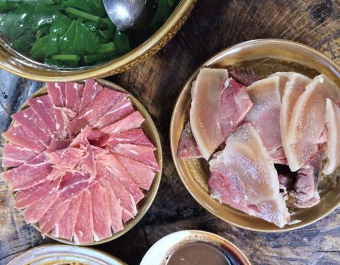 老板上过《舌尖上的中国》,所以这家店在诺邓的名声非常大。火腿和其他菜品的口味也都不错。