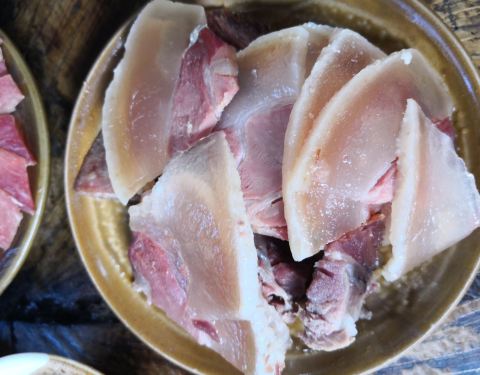 诺邓盐泉农家老板是诺邓火腿腌制第二十代传承人 ,也是诺邓火腿传统技艺腌制非物质文化遗产传承人,他家的生、熟火腿配粑粑味道很好很吃,住宿干净、舒心。