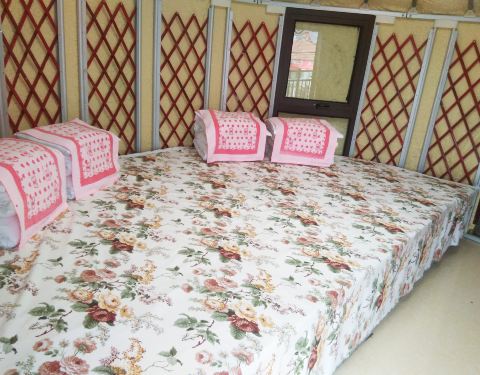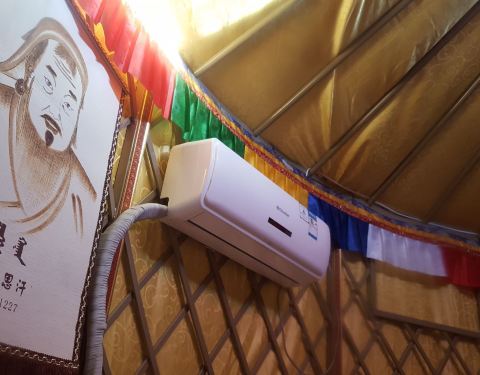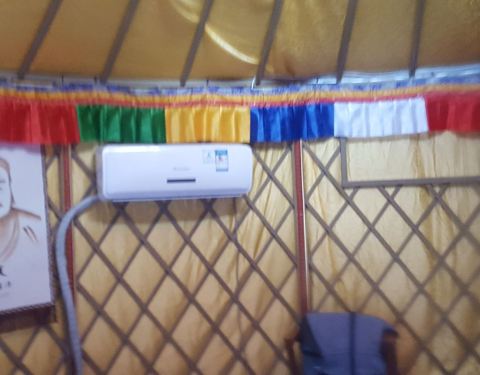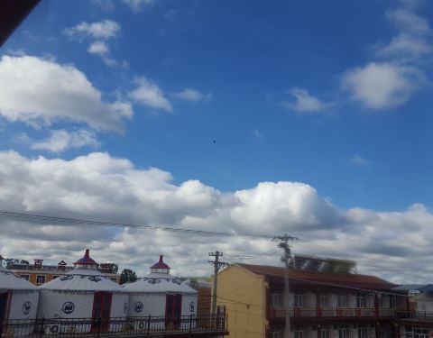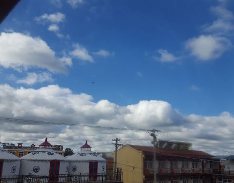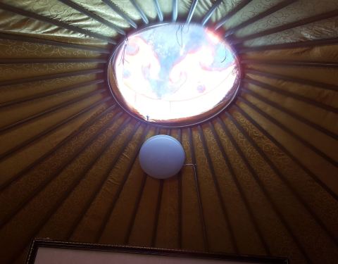 提前定了蒙古包,第一天住进去有空调,独立卫浴,床也够大,美美的住进去,第二天一早惊喜的发现,蒙古包顶上采光,360°采光设计,屋子里很亮,比我们平常靠窗户采光的感觉完全不一样。好开心。上午去了天路,恩...