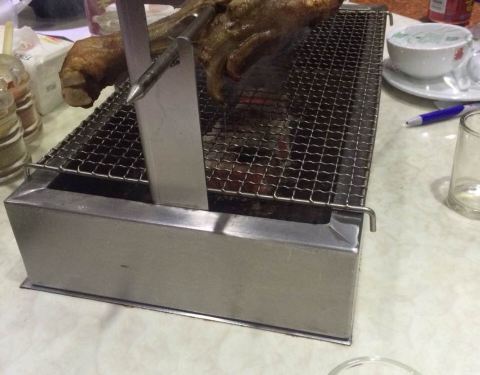 餐厅位于箕槽街,夹在两家日料店里面显得有些显眼。记得16年就和朋友去吃过这个餐厅,惊喜的是居然还在。和几个朋友相约在这吃烤羊排,冬天似乎很适合吃羊肉。用了团购券,价格划算了许多。一份羊排和羊腿,还有羊汤等。 这里的羊肉烤的外焦里嫩,沾上店里的孜然,显得特别的香。 羊排相对比较肥一些,个人比较喜欢略带肥肉的羊肉,味道香,服务员会帮你切好拿过来,再放在店里提供的碳炉上的铁丝网上稍微烤下,香味十足。 这边的服务也还不错,提供特制的刀和叉,方便切羊腿,羊腿还可以让服务员帮忙切好。 这里的其他烧烤味道倒不是很好吃,但是羊肉个人感觉性价比很高。冬天吃羊肉不错哦