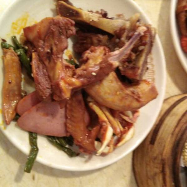 [美食推荐]他家的小龙虾、大螃蟹、铁板鱿鱼、新疆大肉串、烤鸭都是特色,一般要排队等候,大肉串、...