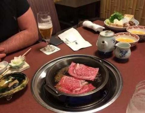 我之前看旅游攻略,说是非常推荐在浅草寺附近的这家饭店,所以就去了。我们中午去的时候人不算多,当时是一位非常和善,大约四十来岁的服务员接待我们,她非常有礼貌,说一口流利的英语,仔细的给我们推荐菜品和倒茶,服务真的非常棒。 我们三人点了份寿喜烧和牛排盖饭的午饭的套餐,大概一份在2500日元左右,还有一份雪花牛肉寿喜烧大概8000日元,都很好吃,肉非常嫩,米饭软硬适中,无可挑剔。