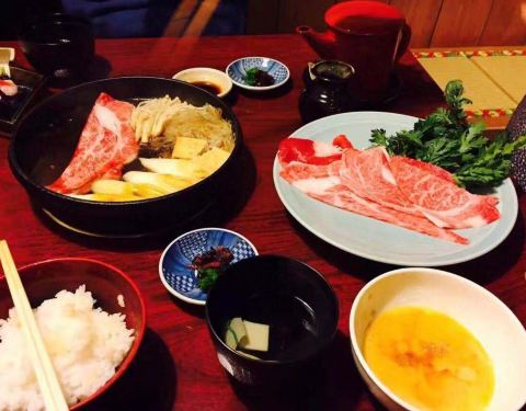 我之前看旅游攻略,说是非常推荐在浅草寺附近的这家饭店,所以就去了。我们中午去的时候人不算多,当时是一位非常和善,大约四十来岁的服务员接待我们,她非常有礼貌,说一口流利的英语,仔细的给我们推荐菜品和...我之前看旅游攻略,说是非常推荐在浅草寺附近的这家饭店,所以就去了。我们中午去的时候人不算多,当时是一位非常和善,大约四十来岁的服务员接待我们,她非常有礼貌,说一口流利的英语,仔细的给我们推荐菜品和倒茶,服务真的非常棒。 我们三人点了份寿喜烧和牛排盖饭的午饭的套餐,大概一份在2500日元左右,还有一份雪花牛肉寿喜烧大概8000日元,都很好吃,肉非常嫩,米饭软硬适中,无可挑剔。