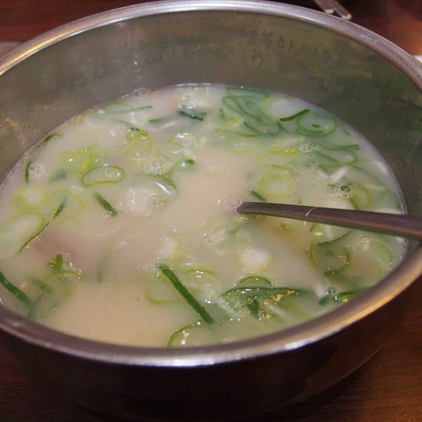 韩国招牌的美食,但个人味道一般般,实在太淡,我不是很推荐。两家连锁店明洞和弘大,去哪个随意啦!两家店水平相当。弘大店可以乘坐地铁到弘大地铁站就好,出来100多米就能看到了,听说是家族企业哦。店面不大,座位显得比较紧密,有点拥挤,胖人可能觉得不舒服,当天是早一点到的但是人也很多哦,人多时候感觉人挨人的,所以不是很舒服啦,好在只是喝个汤也耽误不了多久忍耐喽。店名很有趣叫神仙雪浓汤,可能是一种让人觉得汤很美味,喝了好似神仙的感觉?不管怎样,雪浓汤是他们家的招牌加主打,7000起,大份的10000,根据牛的部位不同有所区别。此外,他们家的饺子和煎豆腐、泡菜饼也都不错。不过主打菜雪浓汤实在太淡了,淡到我感觉再喝白水,虽然汤底很新鲜,肉味也够,但是总觉得淡淡的,牛肉也没味,肉给的也不多,总体就是再喝汤。好在韩国的餐厅都免费提供泡菜和辣萝卜,我们才把汤喝完……碗很大,汤很多,但是真的不够味,也就尝尝,下次不会再去了。服务什么的都不错,他们都会中文还有中文菜单,点菜不是很费劲,不过菜品选择不多,基本就是我上面说的那几样,建议当早餐喝的暖暖的,午饭晚饭感觉吃不饱哦!这家店似乎是24小时,不过需要您在考证啦!