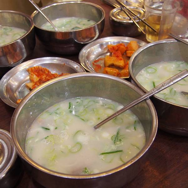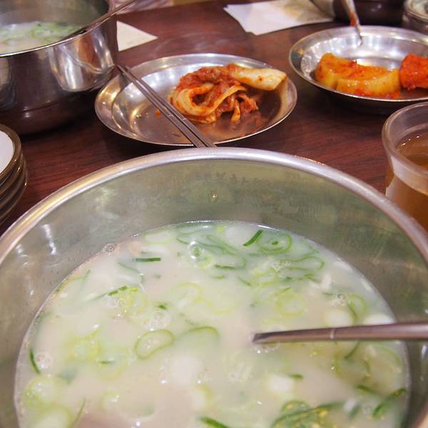 神仙雪浓汤在首尔遍地都是连锁店,就近吃就好了,品质都是有标准的。弘大店的生意特别好。不过神仙雪浓汤实物没有传说中的什么味道鲜美,香味浓郁!相反,个人觉得很寡淡,没有任何特别的味道,还得自己加盐,泡饭吃还蛮腻的。