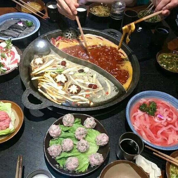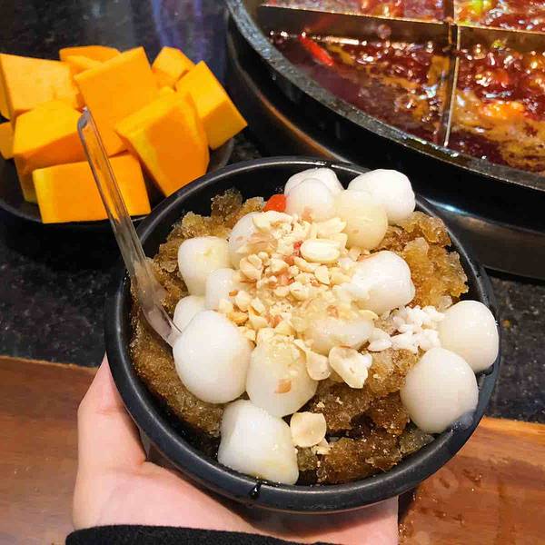 推荐的菜品有麻辣牛肉(8分熟就可以吃了,嫩的很)、鸭血(特别的新鲜,刚端上来都被红彤彤的样子吓到)、贡菜丸子(肉丸子里加入了贡菜,肉丸子的嚼劲加上贡菜的脆爽,简直完美)、雪花肥牛(肥瘦均匀,薄薄的一片,很鲜嫩。)、毛肚、黄喉、鸭肠必不可少(是必点的菜品哦~)、干炸酥肉(重庆火锅店基本都有的,味道也不错哦)、八秒土豆片(超级薄的,放进锅里烫八秒就可以拿出来吃了)、还有经典老肉、红糖冰汤圆(菜单上好像没有,是我问服务员有没有冰粉时她告诉我有冰汤圆炒鸡好吃,解辣味道也不错。)