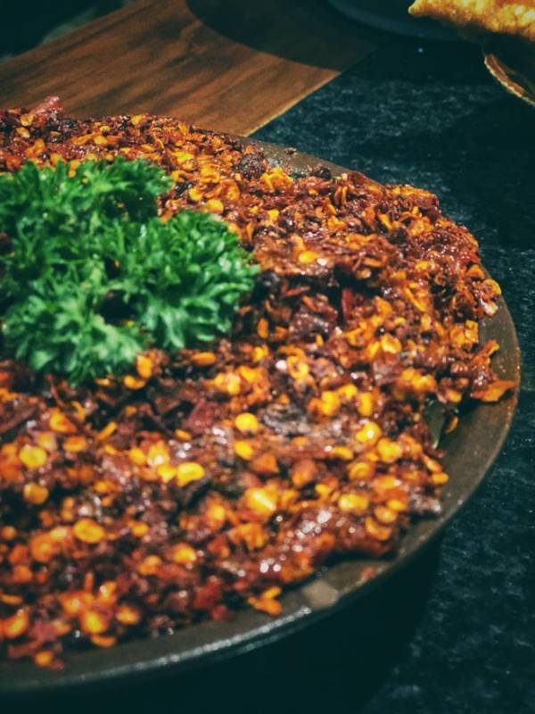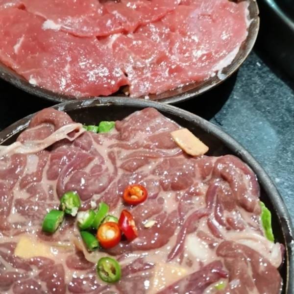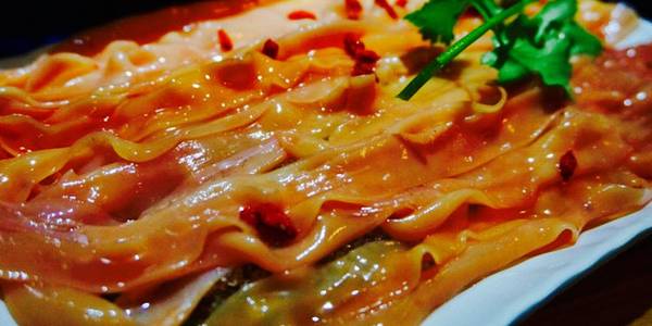 在其它地区吃这个,绝对走肚。在火锅之乡吃,辣则辣矣,但绝不烧心。牛肉嫩脆上味儿,蘸了蒜碟儿滴着香油裹着海椒,一边吹着一边囫囵的入嘴,吃到这会儿也真是辨别不了味道,只觉得爽辣过瘾,要得就是个挡嘴的劲儿!