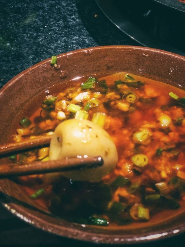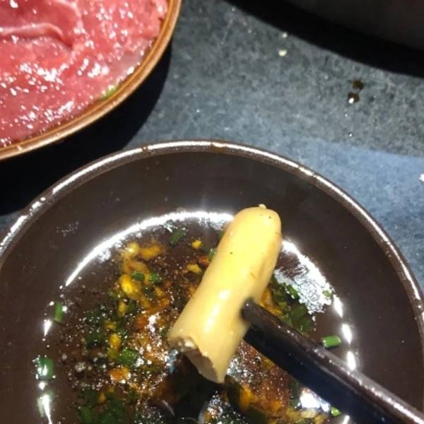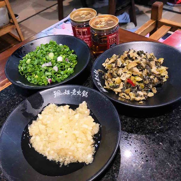油碟是标配!没吃过的我一开始看到这么多油是拒绝的,后面尝了一口简直打开了新世界的大门啊!什么减肥都通通丢到一边去,火锅里的食物蘸了油碟特别的香,不仅能适当的压下些许麻辣味,还能提升鲜味,还是降火生津的。