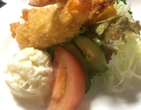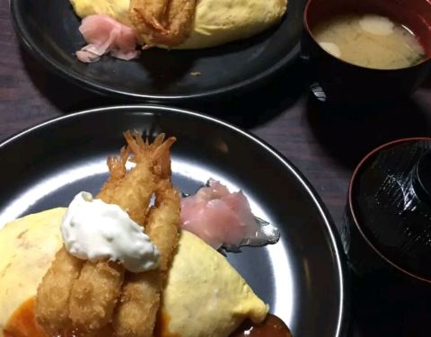 大阪著名的蛋包饭,味道比我想象的有一些差距.可能这家推崇的是传统的味道.点的牛肉蛋包饭套餐,套餐配有三个炸虾和味曾汤.牛肉饭是牛肉薄片炒的,口味与日式炒饭较为接近,相比现在欧式的蛋包饭少了一些奶味的口感及软软的蛋皮.酱汁也应该是传统的味道.
