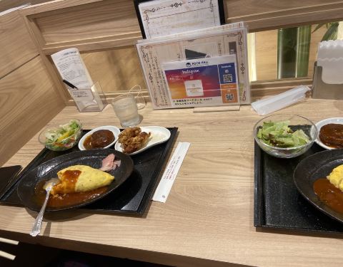 在酒店门口就是 不用像别的跟着导航来找路探店的人觉得很难找。 11:00开门 大概10:30开始在门口排队了 人不算多 韩国人蛮多的 里面装修古色古香 环境不错 还有个日式庭院。 点了 鸡肉蛋包饭套餐和牛肉蛋包饭 最精彩的是“炸鱿鱼”!哈哈哈哈 日本的鱿鱼非常嫩诶 比上海的好吃多了!每次去海岛 必点鱿鱼。 好啦 鸡肉蛋包饭也好吃的 酱汁 蛋皮 鸡肉都ok!但再ok也就是一份蛋包饭啊 不可能美味到上天入地~ 服务还是很不错的 上菜快~