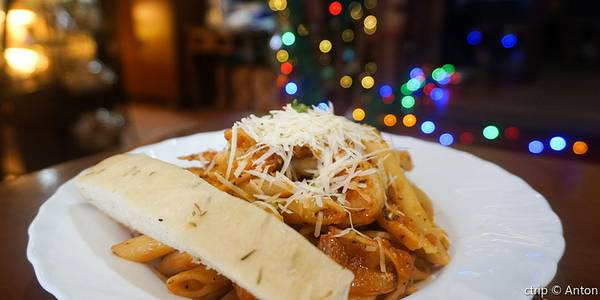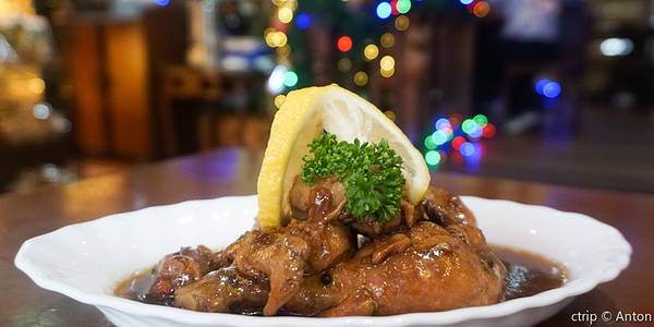 在老城区的教堂不选,人不多,菜色挺丰富的,特色菜也做得不错,上菜速度快,咖喱为什么可以那么香,而且也不太辣,意面和披萨也真的贵了些,也不算太出色,猪蹄皮很脆,也不会太肥腻,好吃。
